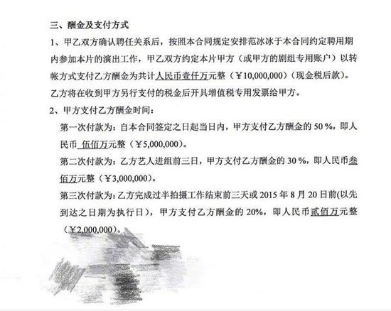 5月28日,崔永元微博晒出一组拍戏合同,里面关于乙方的诸多条款,令人咋舌。而合同上写明的“范冰冰”三个字立马成为全网焦点。29日,崔永元继续发布消息,称“一个人演一出戏,签了2份大小合同,一份1000万,一份5000万,而演员只需要在片场4天。”