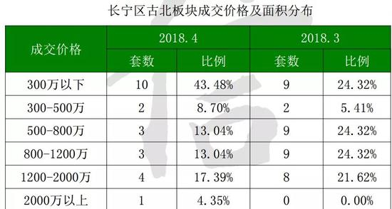 据信义房屋统计,整个古北板块,4月份才成交23套,300万以下占比达到43%。