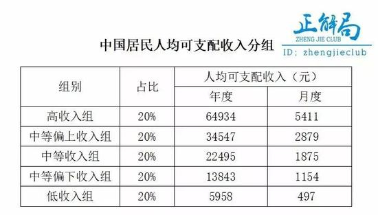 在五等分中, “低收入组”的年人均可支配收入只有5958元,平均下来,每月收入不到500元。
