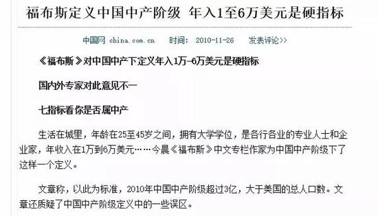 《福布斯》依此推论,中国有3亿以上的中产阶级,超过了美国总人口。