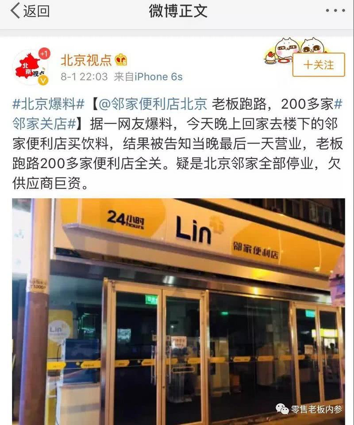 其实,早在两天前,就有零售业内人士向《零售老板内参》称爆料:“邻家便利店的资金出现问题,有人已经辞职出走。”并且问笔者:“邻家背后的投资人究竟什么情况?”
