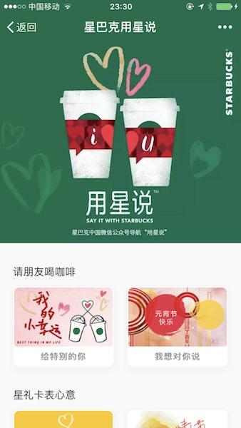 但中国显然不是星巴克自立渠道就能玩转的市场,腾讯、阿里巴巴的存在,使其必须经由这些合作伙伴,才能一次性触达最大规模的消费者。在与阿里巴巴的此次合作之前,星巴克先后在门店接入了微信和支付宝支付,微信上也上线了“用星说”的社交虚拟礼品卡,这些都被认为是这家美国公司在中国的“进步”表现。