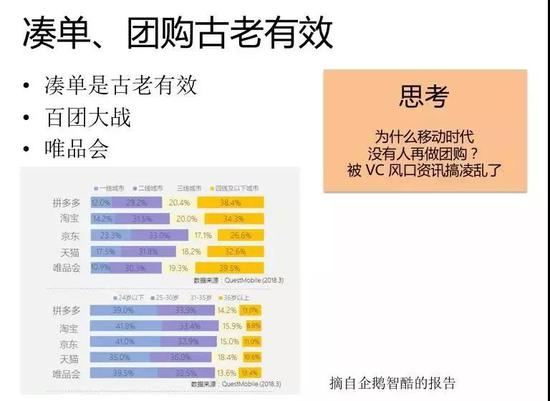 曾经团购的模式被验证了,但是突然之间整个场子里没有人再做这个生意,只剩拼多多在做。