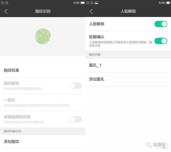 虽说是Android 6.0的系统,但是V9却加上了最新的两种解锁技术,指纹识别+人脸识别。在解锁方式这方面,V9并没有什么花招,实实在在的解锁模式,并且支持指纹支付、眨眼确认功能,这里要客观给个赞。