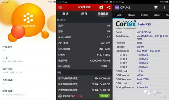 两款软件显示都是联发科X25处理器+4G内存+1440x2550分辨率。根据我们多年的评测经验这种操作感受绝对不可能是上面的硬件,此事绝对有蹊跷。并且,下载的是安兔兔7版本,怎么打开之后变成安兔兔4了呢?