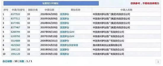 此后的2006年、2007年、2010年,茅台又多次提交过“国酒茅台”的商标申请,除最后一次商标申请通过初审外,此前的商标申请均已失效。