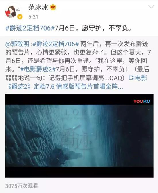 世事难料。距离上映还有一个多月的时候,影片的出品方乐创文娱(原乐视影业)官方宣布《爵迹2》临时撤档,解释是因制作问题。但知情人士告诉AI财经社,不能上映是因为主演范冰冰,再上映时间暂时还没准信。