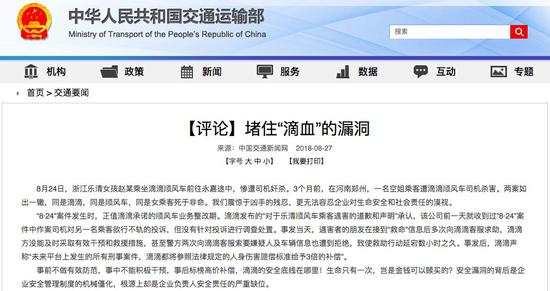 同日,交通运输部的官网发表了题为《堵住“滴血”的漏洞》的评论,言词极为犀利,可以说已经出离愤怒。