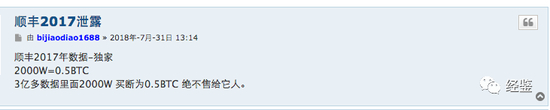 3亿条疑似顺丰用户数据泄露 暗网交易售价两个比特币