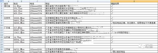 《经鉴》 从一位要求匿名的人士处获得了这次交易的10万条验货信息。在这10万条信息中,确实包含了姓名、地址、电话,也即快递必须的三样基础信息,但总量只有65000多条。