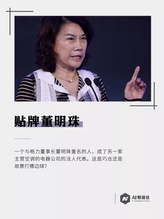 近日,又一位“董明珠”走入公众视野:中科弘力电器(天津)股份有限公司的法人代表董明珠。有媒体发现,这家公司主营空调,旗下现有品牌“REE弘立”,其前缀与格力的英文“GREE”仅差一个字母。中科弘力大股东孟凡昌控股的另一家公司,名为晶弘空调(江苏)有限公司,而格力旗下三大品牌之一便是晶弘,只不过是做冰箱的。