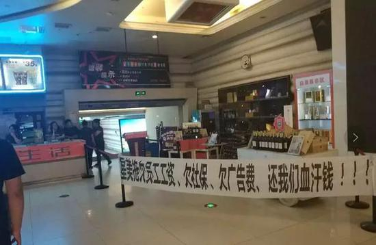 9月1日,尚在营业的星美沈阳大悦城店,被已停业的四平店员工拉横幅“讨薪”,相关人员表示,4月份工资到现在没发,五险一金被拖欠一年半,员工没法办离职,找下家也没法办入职,目前毫无经济来源。同时,大悦城店售票员回复小娱,她也有3个多月工资没发。