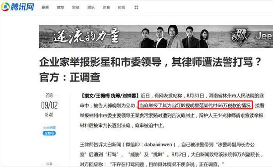 涉税的是当红影星,又去过河南给郭晓刚站过台,几分钟出场费高达200万,姓范,貌似这个范围不是很大呀。