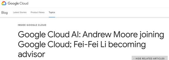 “在大约两年前,李飞飞博士离开斯坦福大学,加入谷歌担任Google Cloud AI的领导者和首席科学家。