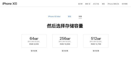 售价方面,iPhone XS国行版本起售价格为8699元,iPhone XS Max起售价格9599元,最高售价可达12799元。iPhone XR虽然是苹果推出的“廉价版”,起售价格也达到了6499元。