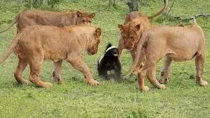 中间那只就是蜜獾,原图描述为“蜜獾vs狮群”。来源:YouTube