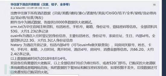 8月28日6:00,暗网中文论坛中“华住旗下酒店开房数据”标价8个比特币。