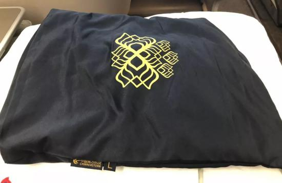 本身不饿加上供应的餐食的确难吃,所以小编主食基本没动吃了点甜点就准备睡觉。这时候空姐贴心的送来了睡衣,只有M和L两个码子,对于小编这种接近190的人是完全穿不了的。睡衣上除了东方航空LOGO以外没有其他更多关于厂家、产地和面料的介绍,不如和国航那样直接不发。