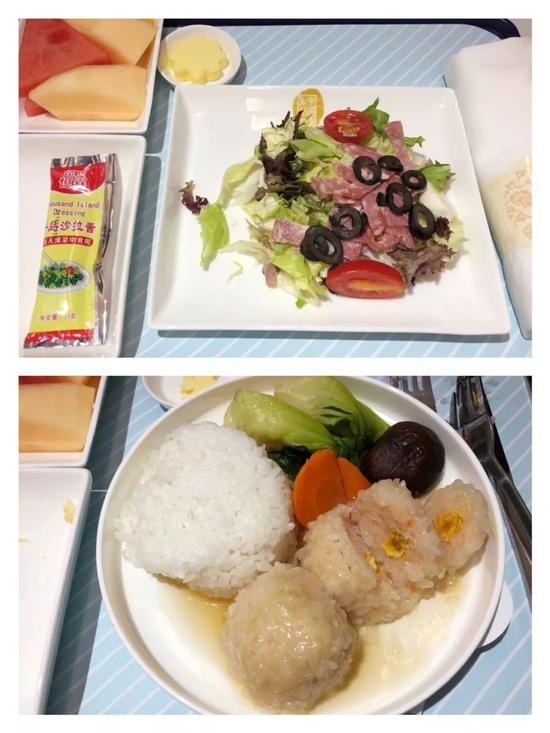 上菜之后不得不感慨东航这个简餐其实不简啊。满满的主食和正餐并无二致。