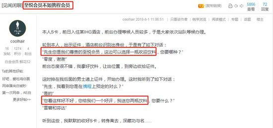 下图来自飞客茶馆一个嘲讽IHG至悦会员不如携程会员的帖子截图。