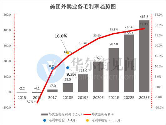 2018年上半年,美团外卖业务整体实现12.19%的毛利率水平,而招股书披露的2018年1-4月,毛利率为9.32%。见智数据模型(微信添加“hellojianzhi”获取)分拆的5、6两个月份数据显示,美团外卖在这两个月的毛利率飙升至16.6%!