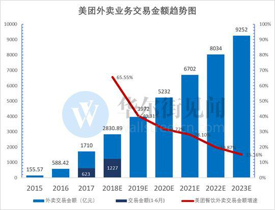 2018年上半年,外卖业务交易金额同比增速高达96.95%,达到1227亿元人民币,是2017年全年的71.75%,外卖业务仍处于高速增长中。