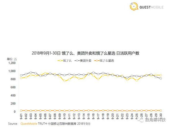 事实上,百度外卖日活用户规模已难以与饿了么和美团点评外卖匹及。第三方机构QuestMobile监测的9月三个应用日活用户数据显示,饿了么和美团外卖处于800到1000万日活区间,而百度外卖日或不足100万。