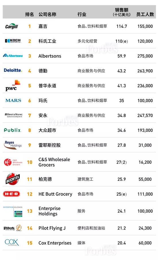 福布斯发布美国最大非上市公司榜,公司低调却带来巨大财富