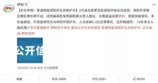 而伊利集团又在昨天的节点上,在其官网发表长篇举报信,指出事情的来龙去脉,将矛头直指前任董事长郑俊怀。