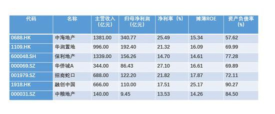据克尔瑞发布的2017年销售金额、销售面积榜单,保利、中海、华润稳居前10,而中粮地产两项数据均位于20名开外。
