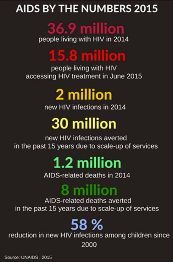 联合国(UN)的资料也显示,自1981年6月发现首例艾滋病病例至今,约有7800万人感染艾滋病毒,3500万人死于艾滋病相关疾病;至2015年,3670万人携带艾滋病毒。几十年来,艾滋病感染率急剧上升,死亡率也不断攀升。