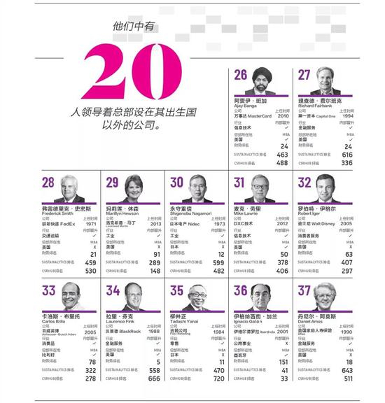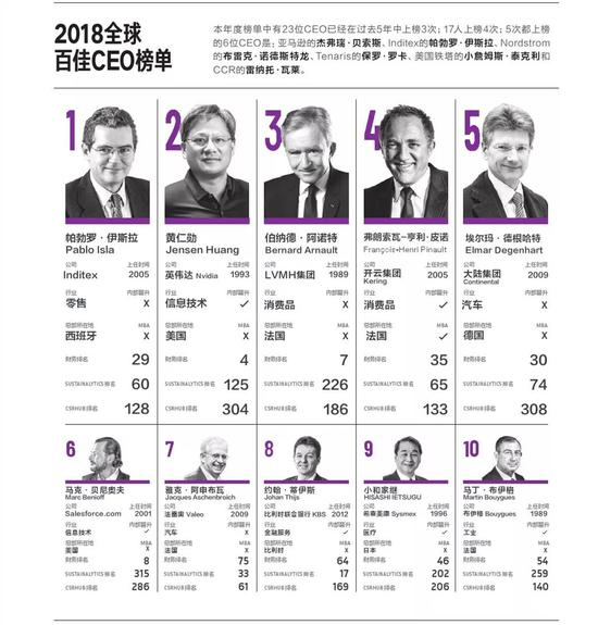 2018全球百佳CEO完整榜单 前20名中仅一位华人
