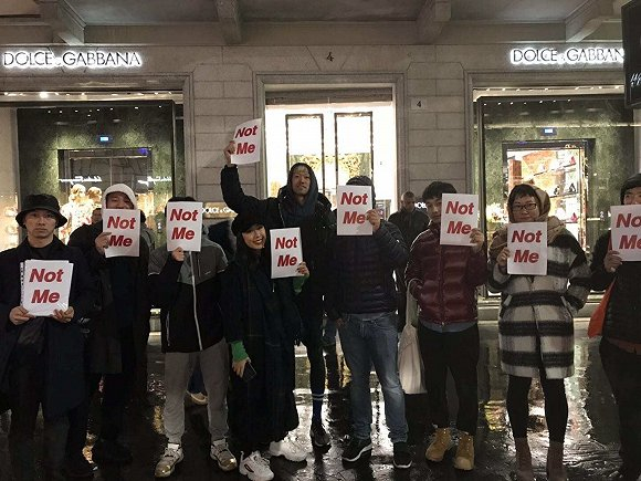 Dolce & Gabbana恐怕也没想过,自己投入巨大的大秀会变成品牌史上最大的一次信誉危机。11月22日凌晨3点左右,有热心网友向界面新闻证实,已有华人聚集在Dolce & Gabbana米兰总部门口抗议,人们手中举着的抗议牌上写着”Not Me“。