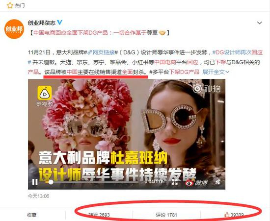 “这是D&G在华最火的一天,也是其最凉的一天!”。