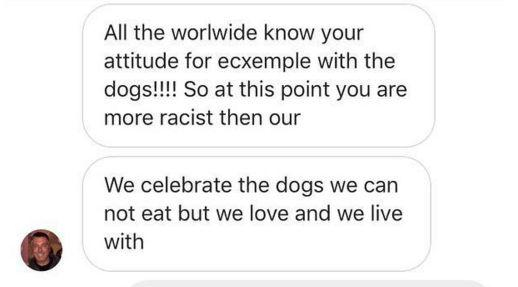 “全世界都知道你们吃狗,所以你们比我们还要种族主义!”