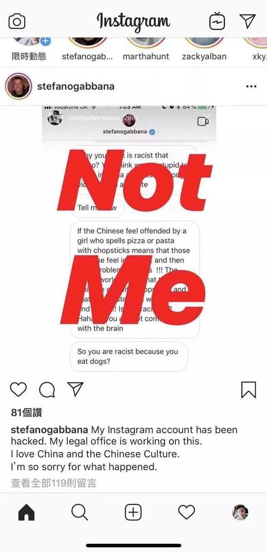 所以关于gabbana,没啥好洗的,特别是这位仁兄,辩解说自己被盗号了,然后说”那不是他“的时候,根本不像个年入亿万的企业家,活像个无赖。