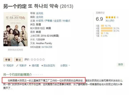 2014年,根据此事改编的韩国电影《另一个约定》上映,在韩国全民围观下,三星不得不公开道歉,并承认工人因工作而患病,将提供赔偿。
