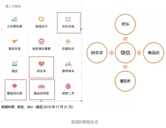 微信购物生态中的孩子越来越多,京东的地位逐渐下降。
