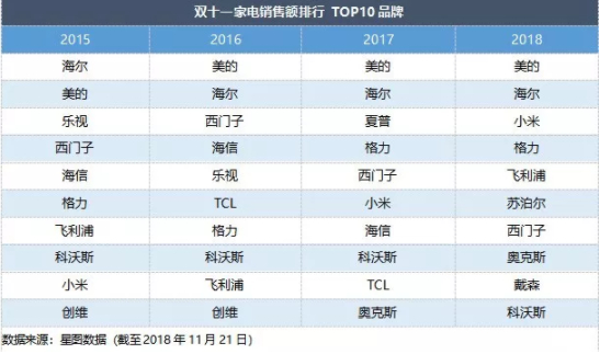 家电行业销售额排行中出现了一个前所未有的品牌:戴森。今年双十一,戴森依靠自己在生活家电销售的优势(TOP2)顺利跻身家电销售前十。英国品牌戴森(DYSON)一直以来主打高端科技家电产品,此次强势崛起在一定程度上反映了网购人群对于品质的追求。