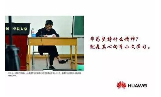 2014年,华为通过企业形象广告首先表明自己的简单,做企业本来是简单的事情,人、生活本来就简单,是人为的搞得那么复杂;第二是坚守,因为简单,所以可以把更多的资源压在坚守的事情上。任正非亲自写的广告词:在大机会时代,千万不要机会主义,应该开放,开放,再开放。当时我在微博上写了一句话:中国企业家应该把这句话挂在自己的办公室里,每天默诵三遍。市场经济机会很多,机会主义很盛行,这是中国企业很大的问题。通过李小文精神,华为就是在应对所谓的互联网思维和互联网精神。