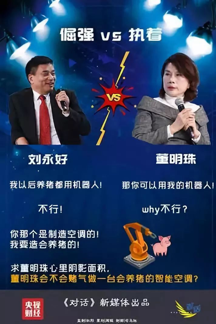 董明珠在《对话》现场表示,现在养猪很先进,都开始用机器人养猪。你也搞机器人,重新组一个队伍。
