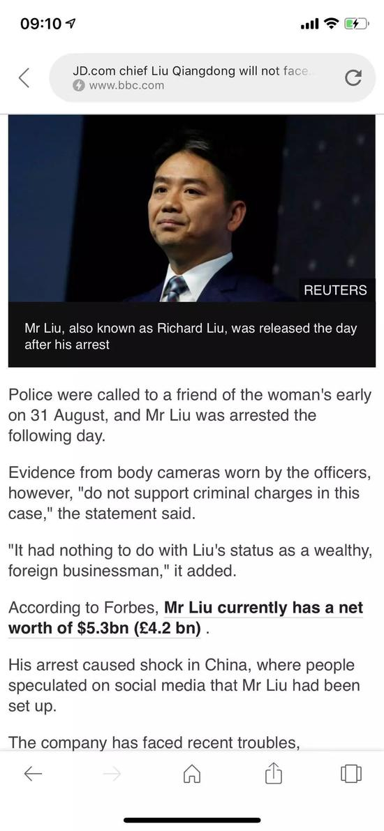 刘强东被逮捕了,但是没有被起诉。