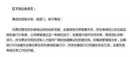 京东学习华为尝试轮值CEO制度