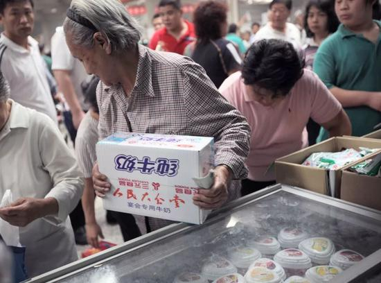 每天21点左右,当天生产的三元牛奶陆续被送到跨国连锁超市和街边小卖部的货架上。晚归的人们常常在楼下小超市提溜两袋三元回家,一顿营养早餐就完成了一半。