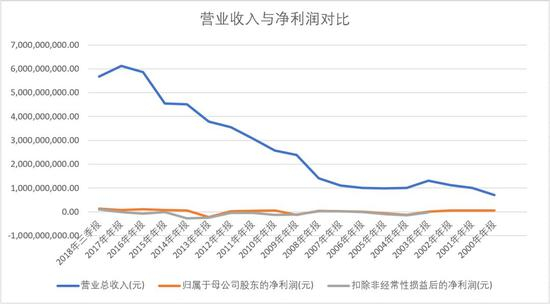 市界将三元股份近18年的营收与净利润规模对比发现,2008年后,公司营收规模不断扩张;与之相比,其净利润水平却几乎没有增长,扣非净利润甚至长期亏损。