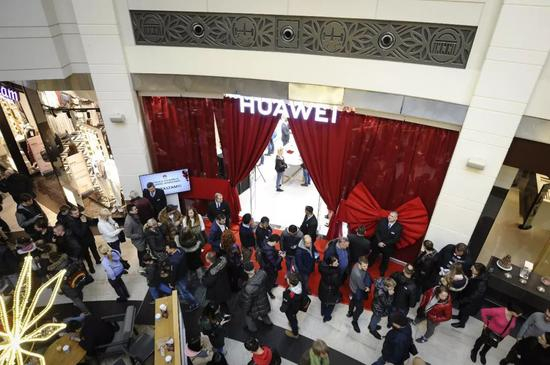 ▲图为华为公司波兰首家专卖店的开业仪式现场。(新华社)