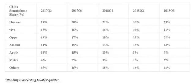 正如下图所示,华为、vivo和OPPO等国产厂商的崛起,压缩了三星、苹果在中国的市场份额。
