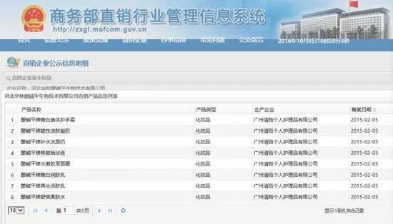 商务部网站的公开信息显示,截至目前,河北华林备案的国内直销区域仅有吉林、广西、贵州、浙江、沧州5座城市。华林集团获国家批准直销的只有8种化妆品。
