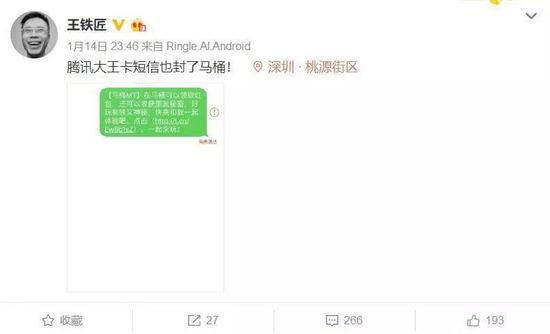 没想到的是,在近两个小时之后,腾讯大王卡短信也封了马桶MT App 的短信验证。