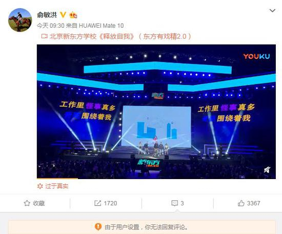 今天上午,俞敏洪竟然在自己的微博上转发了该视频。